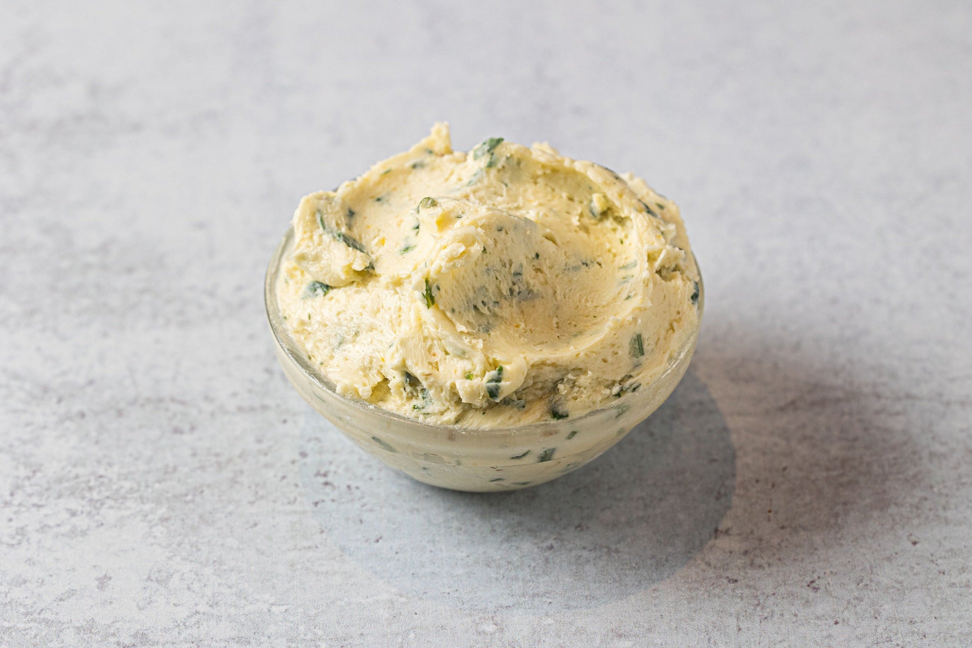 - Preheat the oven to 400° and position a rack in the middle. Preheat a lightly buttered 9” Cast Iron Skillet using Garlic Herb Butter, pouring out any excess and reserve for later. Be careful not to burn the butter in the skillet as it preheats.