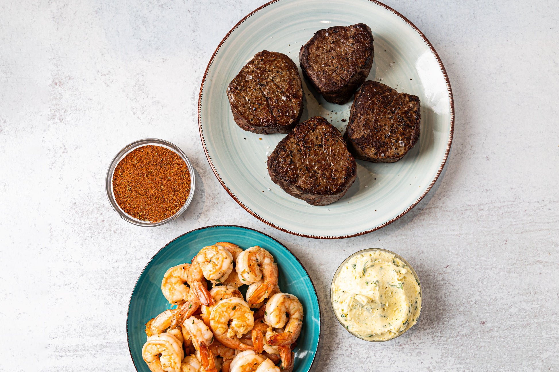Introducing our Filet Mignon and Shrimp Dinner! Add variety to your dinner with both land and sea, sure to please the palette. Your box will include: